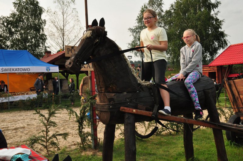Festiwal pełen różnych smaków IX Festiwal Chleba przeszedł już do historii. Za rok będzie miał miejsce mały jubileusz. Po raz X w Janiej Górze spotkają się pasjonaci dobrych, niespotykanych gdzie indziej smaków. Tegoroczna edycja, jak każda z tych minionych obfitowała w szereg różnych atrakcji, nowości. I co najważniejsze w tym roku panowała wspaniała, słoneczna pogoda. Ta na nasze zamówienie- żartowali organizatorzy. Uroczystość rozpoczęła się od przemarszu korowodu z chlebami. Poprowadzili go: Danuta Megger koordynator Wioski Chlebowej, Lidia Nitka sołtys wsi oraz prezes Towarzystwa Rozwoju Gminy Świekatowo Jakub Gackowski. Chleby trafiły do rąk wójta Marka Topolińskiego oraz prezesa LGD Zdzisława Plewy, a pokrojone do uczestników imprezy. Po okolicznościowych przemówieniach przyszedł czas, aby wysłuchać koncertu 4 chórów w ramach konkursu „Swojskie nuty”. Na scenie wystąpiły: „Malwy” Silno, „Kasztelanki” Raciąż, „Cecylia” Bukowiec i „Wesołe gospodynie” Koronowo. Występy oceniało jury: Agnieszka Sowa, Anita Tucholska oraz Stanisław Komuda. Pod uwagę brano muzykalność, dykcje, wyczucie stylu, rytmikę, sposób przekazania tekstu i emocji, wizerunek sceniczny i ogólne wrażenie artystyczne. Zwyciężył chór z Bukowca przed Raciążem, Koronowem i Silnem. Nagrody ufundowało Towarzystwo Rozwoju Gminy Świekatowo. W trakcie festiwalu komisja w składzie: Joanna i Dariusz Fryckowscy oraz Agnieszka Naborczyk w ramach Powiatowego Konkursu „Na najsmaczniejsze domowe pieczywo na zakwasie lub na drożdżach” oceniało wypieki, które dotarły do Wioski Chlebowej. W kategorii „chleb” dostarczono 22 wypieki natomiast w kat. „super pieczywo” 9. Oto zwycięzcy za najlepszy chleb: Monika Schmelter ze Świekatowa, Kamila Łukaszewicz z Szewna i Marzena Ochendal z Lubiewa. Za ciasto I miejsce przypadło Katarzynie Glazik z Trutnowa, II Ewie Lewandowskiej z Janiej Góry a III Alicji Wolańczyk z Klonowa. Nagrody w konkursie zostały sponsorowane przez Powiat Świecki. Na festiwalu nie mogło oczywiście zabraknąć swojskich smaków dobrego, lokalnego jadła ! Były różne zupy, wypieki, konfitury, ziemniaki na kilka sposobów, podpłomyki, kiełbaski, bigos i wiele , wiele innych wspaniałości. A, że nie samym chlebem człowiek żyje można było pooglądać i dokonać zakupu wielu wspaniałych dzieł rękodzielnictwa. Poza tym były miody, tak ważne teraz w okresie zbliżającej się dużymi krokami jesieni, różnego rodzaju wędliny z Gminnej Spółdzielni „Samopomoc Chłopska” czy Manufaktury wędliniarskiej- olchowy dymek W. Śledzia. Duża kolejka ustawiała się do stoiska, gdzie można było kupić ciepły, pachnący, ledwo wyłożony z pieca chleb. Dużo atrakcji przygotowano dla dzieci. Były dmuchane zamki, można było pojeździć na kucyku, poszukać skarbów, dzięki Bydgoskiego Stowarzyszenia Miłośników Historii „Łuczniczka”. Tutaj nie tylko dzieci dobrze się bawiły, również ich rodzice a przede wszystkim ojcowie. Najmłodsi mogli pomalować sobie twarz, uczestniczyć w różnych konkursach z nagrodami itp. Tutaj niespodzianki przygotowała Teresa Łepek wraz ze studentkami z UKW w Bydgoszczy. Przed liczną publicznością zaprezentowały się również miejscowe mażoretki pod kierunkiem Urszuli Cybulskiej. Ich występ został ciepło przyjęty przez widzów. Festiwal zabezpieczali pod względem bezpieczeństwa druhowie z jednostki OSP w Lubana  Lipinach, a całość poprowadzili pracownicy Radia Uniwersytet z Bydgoszczy. KP